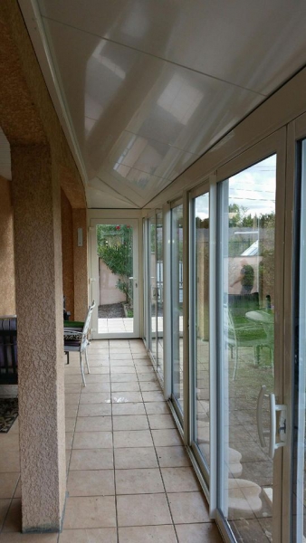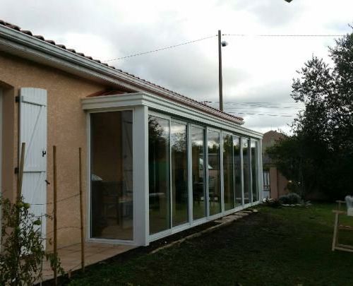Pose de véranda aluminium blanche avec cheneau tournant à Tarbes (65)